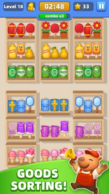 Zakoračite u osvježavajuću avanturu sortiranja gdje se opuštanje susreće s izazovom u "Capy's Marketu"! Ova inovativna puzzle igra, koju je stvorio Capy, donosi svježinu klasičnom žanru spajanja tri elementa. Zaboravite na uobičajene mozgalice – ovdje se taktičko organiziranje raznovrsne robe kombinira s otkačenim zagonetkama, pružajući jedinstveno iskustvo za sve ljubitelje pametnih igara.