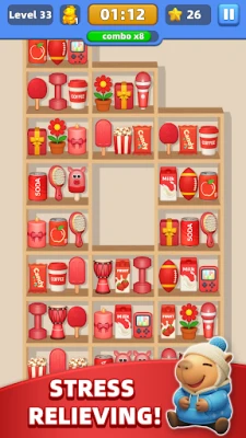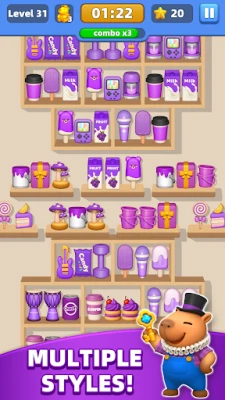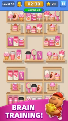 Uronite u živopisnu tržnicu, mjesto gdje je vaš glavni zadatak vješto zamjenjivati i spajati artikle kako biste doveli red na ploču i riješili niz uzbudljivih zagonetki. Upoznajte šarmantnog Capyja i otkrijte širok spektar proizvoda, od kojih svaki posjeduje posebna svojstva i jedinstvene sposobnosti koje možete iskoristiti. Stvorite niz od tri ili više identičnih predmeta i svjedočite snažnim kombinacijama, osobito kada uspijete spojiti 3D artikle, otvarajući put prema strateškom korištenju pojačivača.