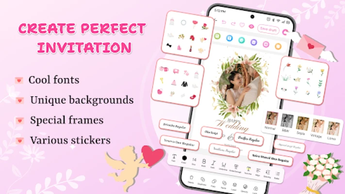 S Invitation Card Maker & RSVP, kreativnost je na dohvat ruke. Naše intuitivno sučelje omogućuje vam lako istraživanje široke palete predložaka, od klasičnih do modernih, te njihovu brzu prilagodbu. Promijenite boje, dodajte vlastite slike, primijenite moderne ili retro filtre i obogatite tekst raznim stilovima fontova. Upotrijebite našu bogatu kolekciju naljepnica i pozadina kako biste dodatno personalizirali svaku karticu. Svaki dizajn postaje platno za vaše ideje, omogućujući vam da izrazite svoju jedinstvenost do najsitnijih detalja i stvorite pozivnice koje zaista ostavljaju dojam.