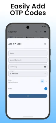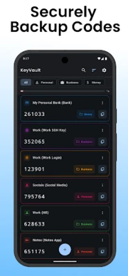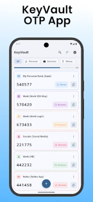 Uz KeyVault, organizacija je intuitivna. Učinkovito razvrstajte i rasporedite svoje kodove za 2FA i OTP kako biste im uvijek mogli brzo pristupiti. Funkcije izvoza i uvoza omogućuju vam besprijekorno upravljanje podacima, pružajući fleksibilnost i kontrolu. Izgrađena s modernim sučeljem koje naglašava jednostavnost korištenja, KeyVault je dizajnirana da bude ne samo moćna, već i ugodna za svakodnevnu upotrebu. Ova aplikacija za 2FA autentifikaciju optimizirana je za besprijekoran rad na Androidu, Linuxu i Windowsu, osiguravajući dosljedno i pouzdano iskustvo na svim vašim uređajima.