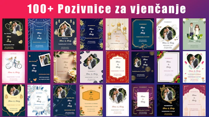 Kreirajte prekrasne i elegantne pozivnice za vjenčanja i obljetnice. Brzo i besplatno dizajnirajte pozivnice iz snova koristeći profesionalne predloške. Dočarajte čaroliju svog velikog dana i pridružite se tisućama zadovoljnih parova.